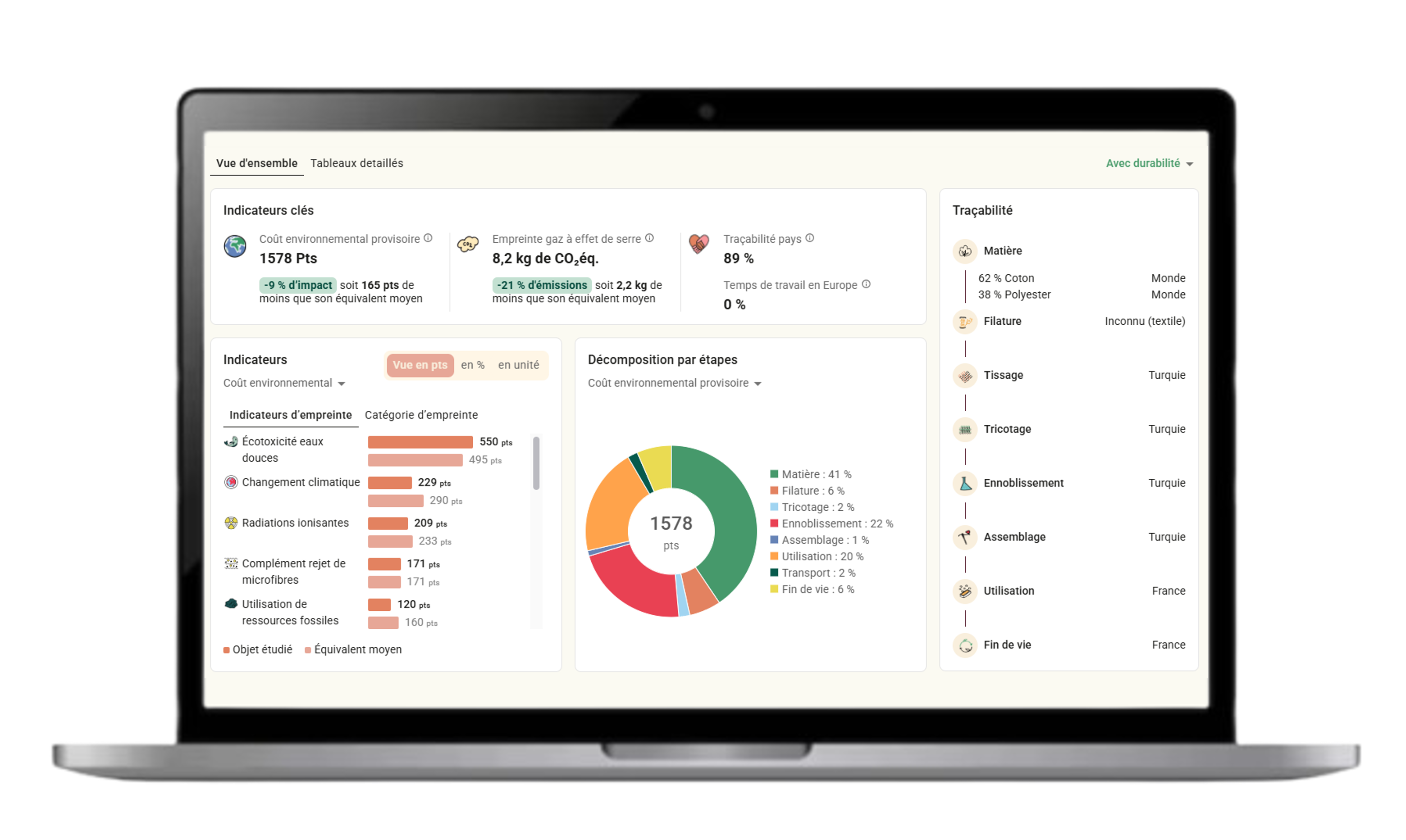La plateforme innovante tout-en-un pour mesurer, améliorer et communiquer l’empreinte de vos objets. Elle vous rendra autonome pour : ACV environnementale et sociale, bilan carbone, traçabilité, éco-conception, affichage environnemental.